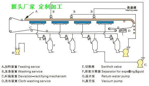 5.操作灵活、维修费用低:在生产过程中,滤饼厚度、洗涤水量、真空度和循环时间等都随意调整,以取得过滤效果。由于滤布能在苛刻条件下工作,且使用寿命长,因而维修费用、生产成本大大降低。